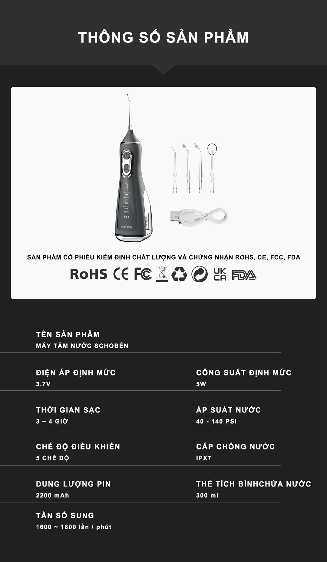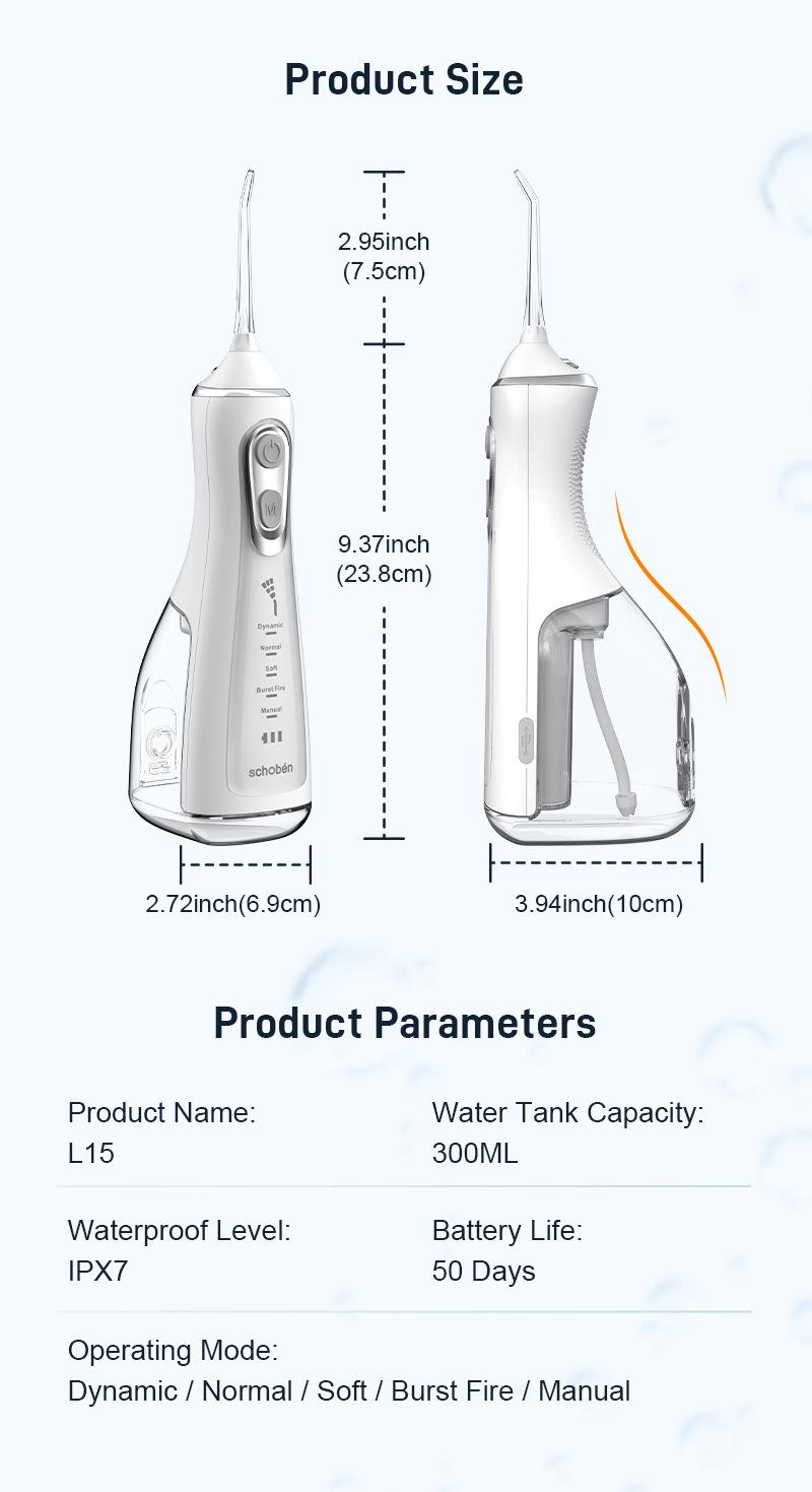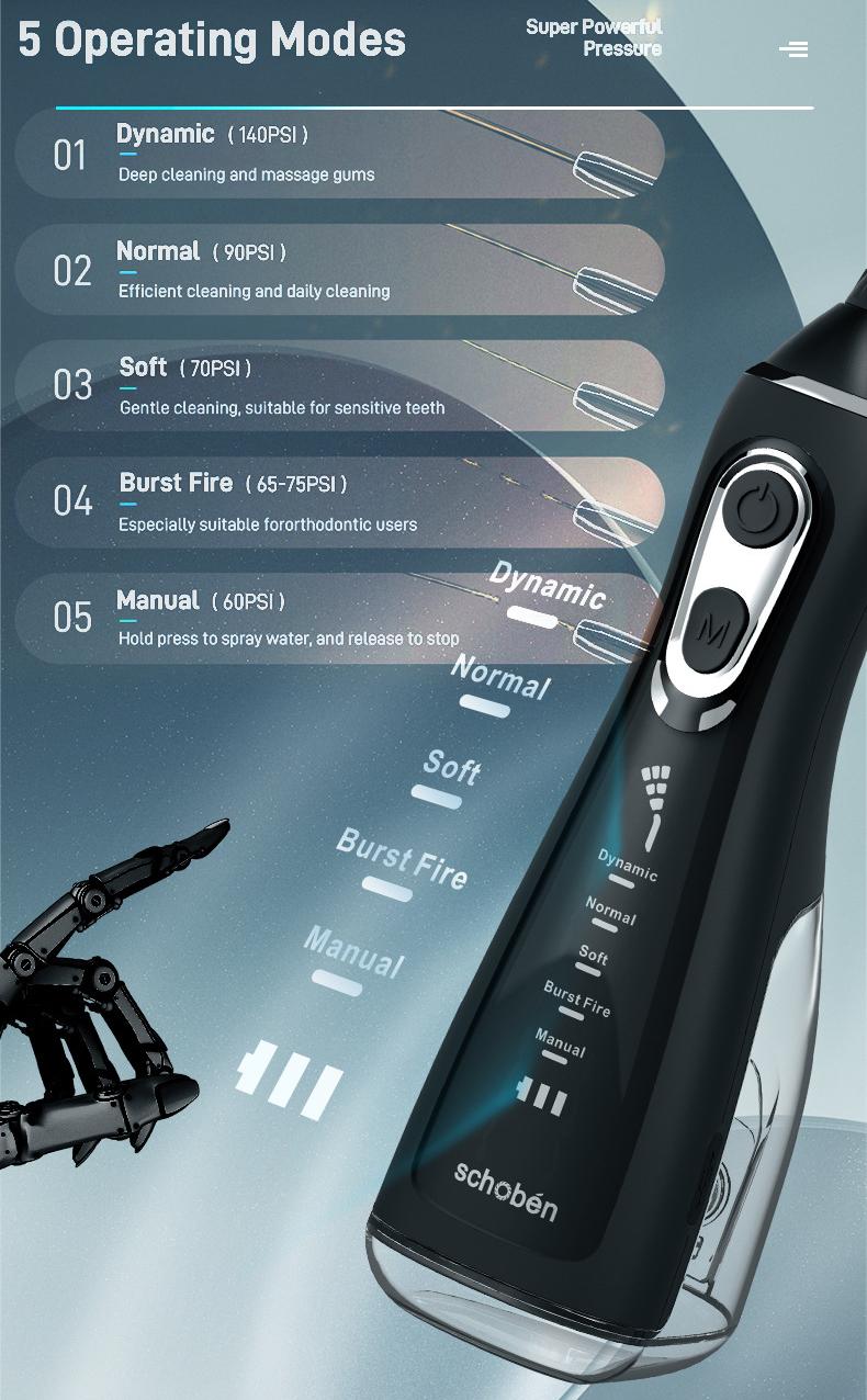 Máy Tăm Nước Cầm Tay Schobén - Chống Nước IPX7, 5 Chế Độ - Làm Sạch Sâu Chân Răng