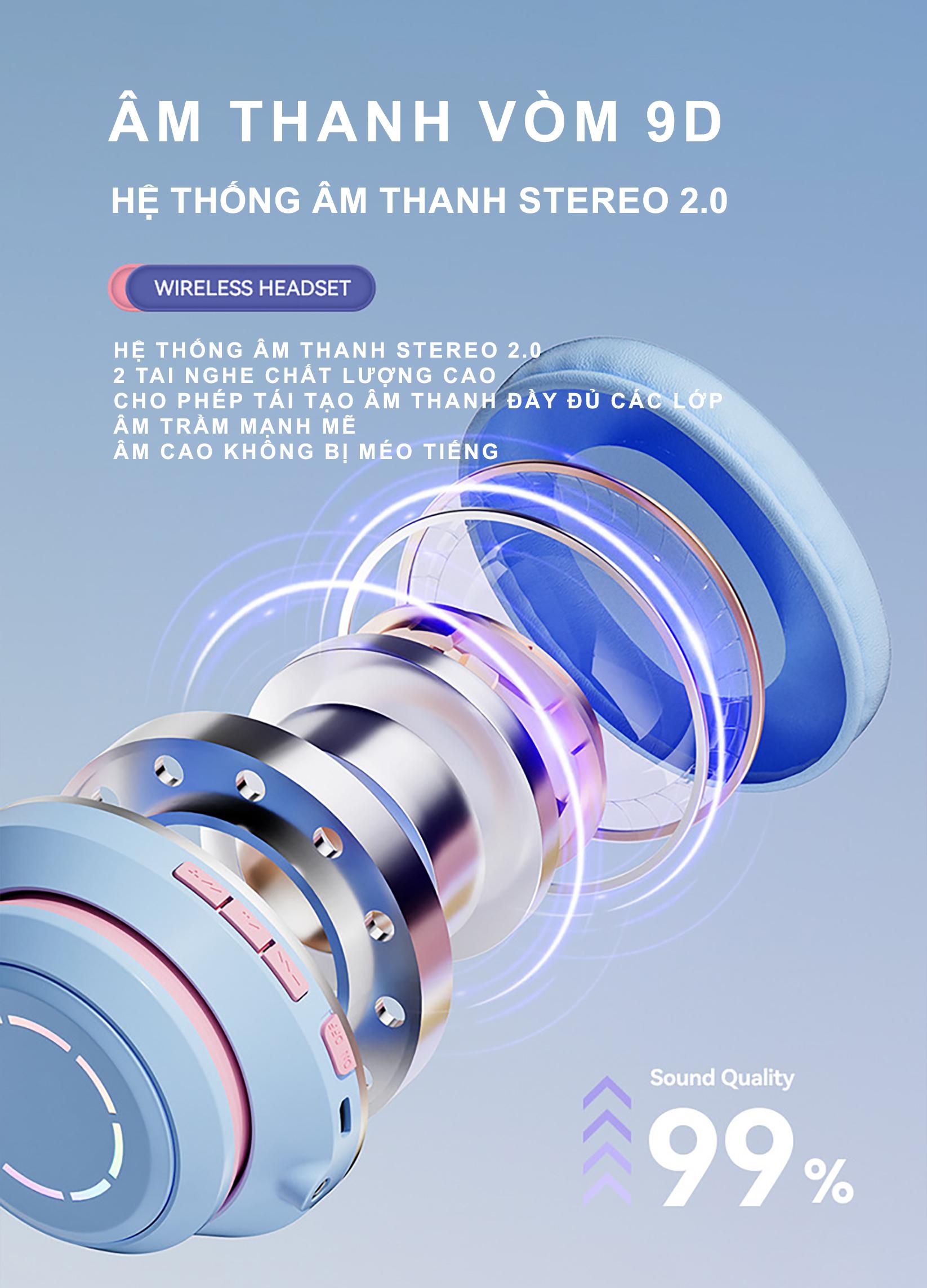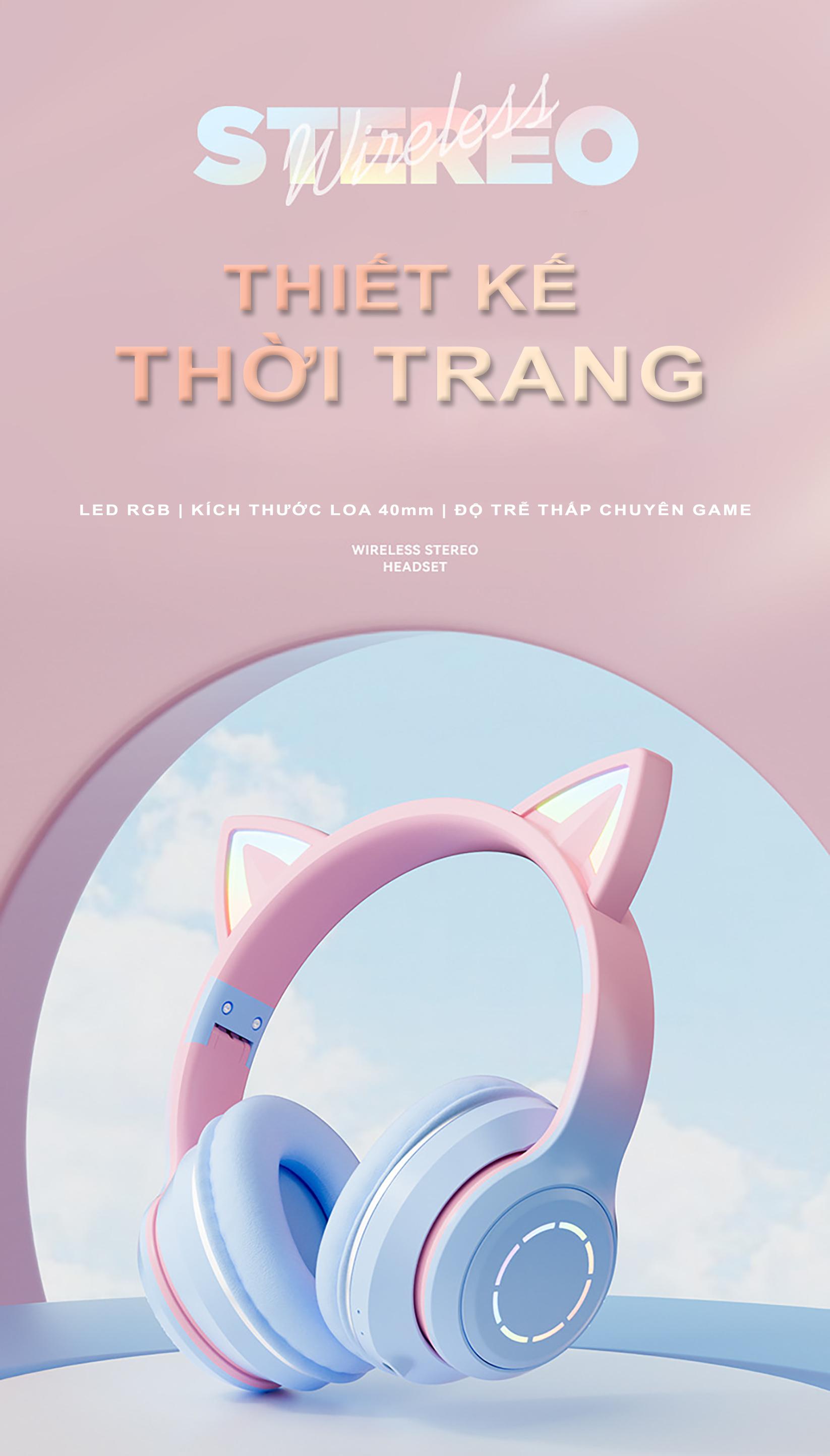 Tai Nghe Chụp Tai - Tai Mèo Bluetooth ST98M - HiFi, Micro, Led RGB, Stereo 2.0 - Cảm Ứng Đèn Led Theo Nhạc, Âm Thanh Nổi 9D, Pin Trâu Chuyên Livestream, Chơi Game